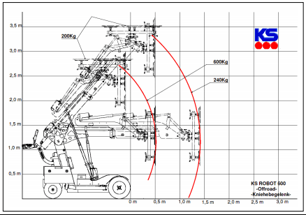 Le KS Robot 600 Offroad se distingue par ses larges pneus à structure profonde avec entraînement frontal différentiel lui permettant de travailler sur des sols accidentés (cailloux, gravillons, herbe, sols mouillés ou glissants) comme cela est souvent le cas sur des chantiers. Il est l’appareil compact idéal pour le vitrage et le levage de d’éléments de vitrages, de portes et de façades lourds et volumineux ou pour la manutention dans les applications les plus variées Le levage d’un poids allant jusqu’à 600 kg n’est pas un problème pour notre KS Robot 600. Grâce à son équipement avec un dispositif d’aspiration à accu, un servo-moteur 24V, tout comme un système linéaire puissant, tous les mouvements peuvent être effectués sans problème par une seule personne par télécommande. Le télescopage de 900 mm (au lieu des 500 mm du KS 550) permet un rayon d’action plus grand lors du montage.